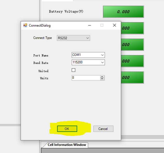 6. After software connects successfully to battery, software with ask to Start Scan, click OK