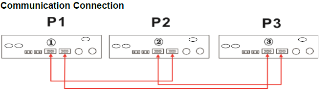 Note: No current sharing cable is required for phases where only 1 inverter is installed. Do not connect current sharing cables across different phases as this can cause damage to the inverters.