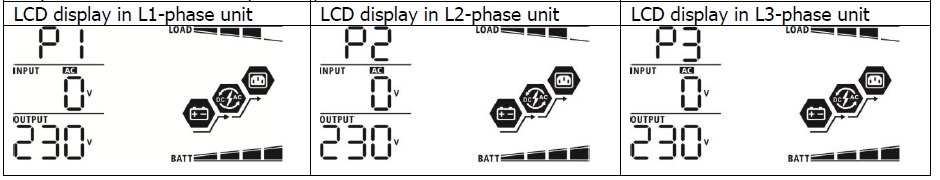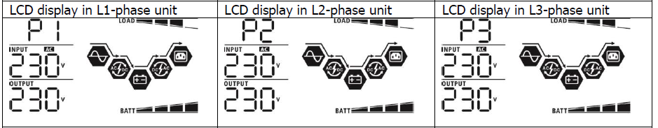 Step 2: Turn on all units and configure parameter 28 as 3P1, 3P2 and 3P3 sequentially. And then shut down all units.