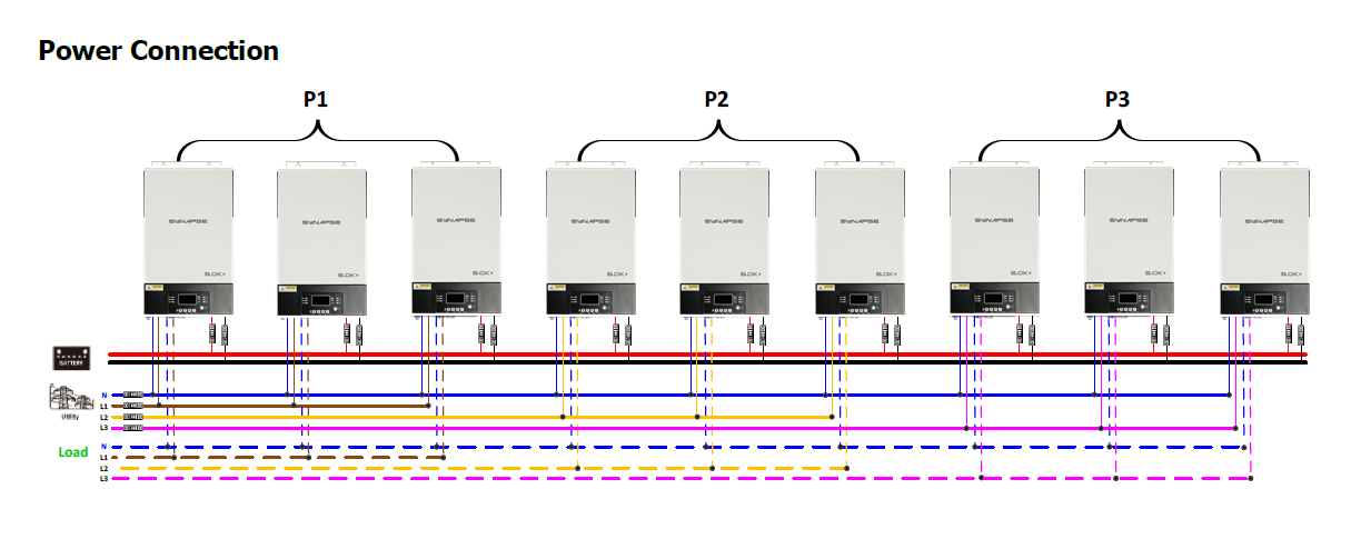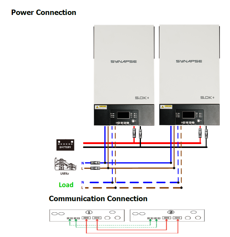Connecting 2 or more Synapse 5.0K+ / 5.0KRM+ inverters in parallel with 2 possible configurations.