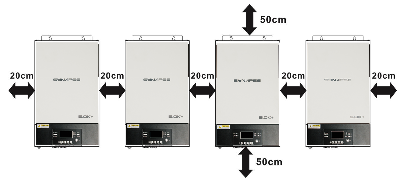 Install the inverters, ensuring the minimum spacing shown below is observed