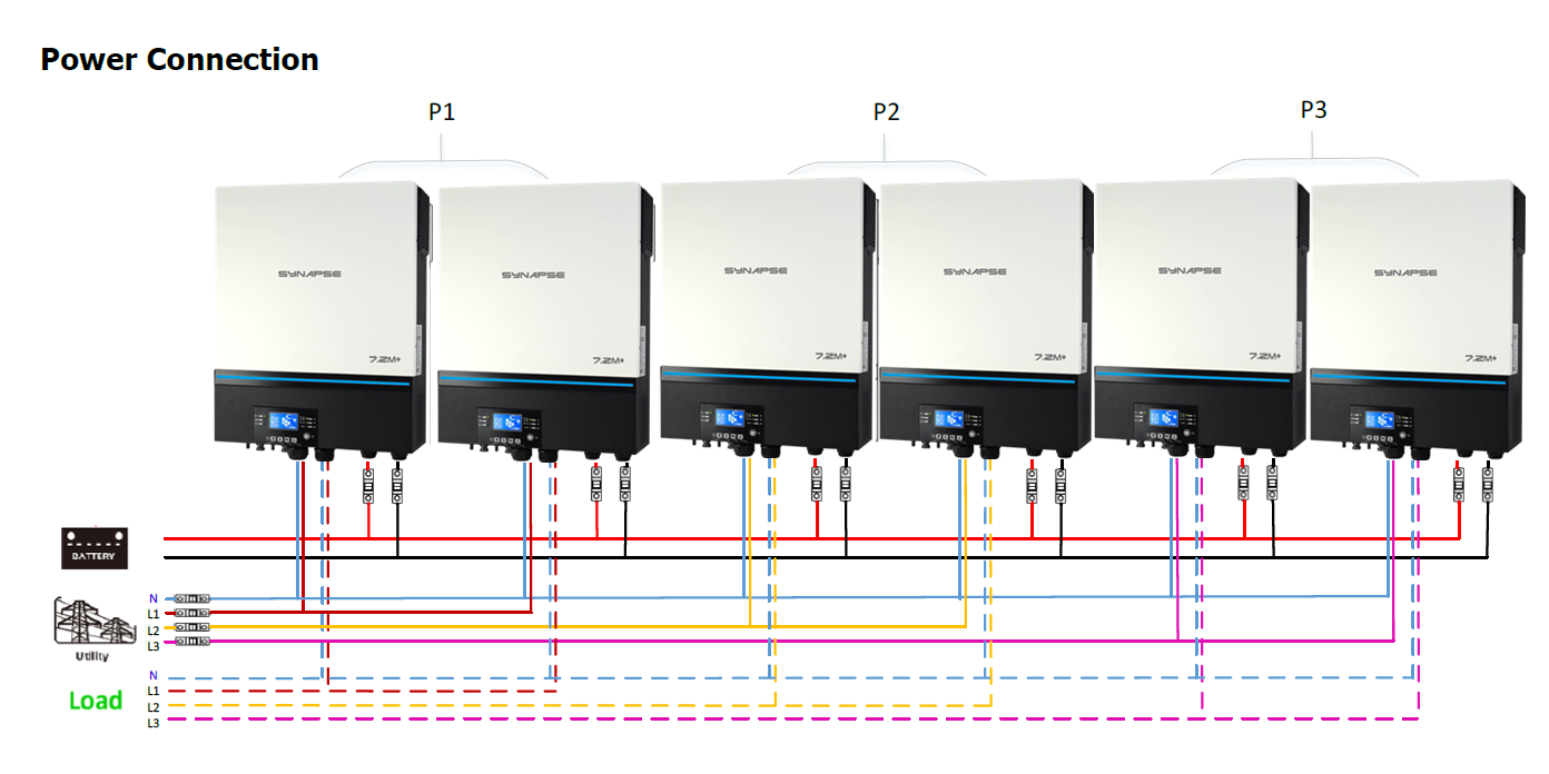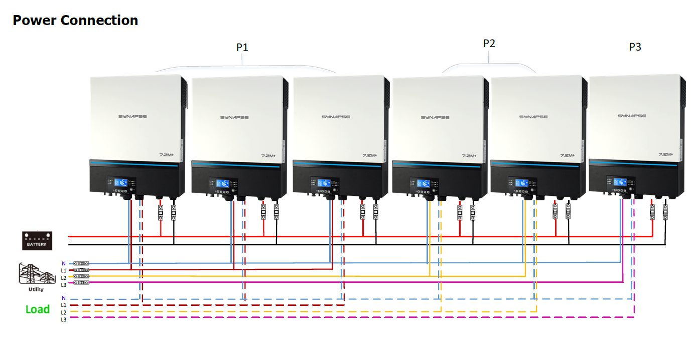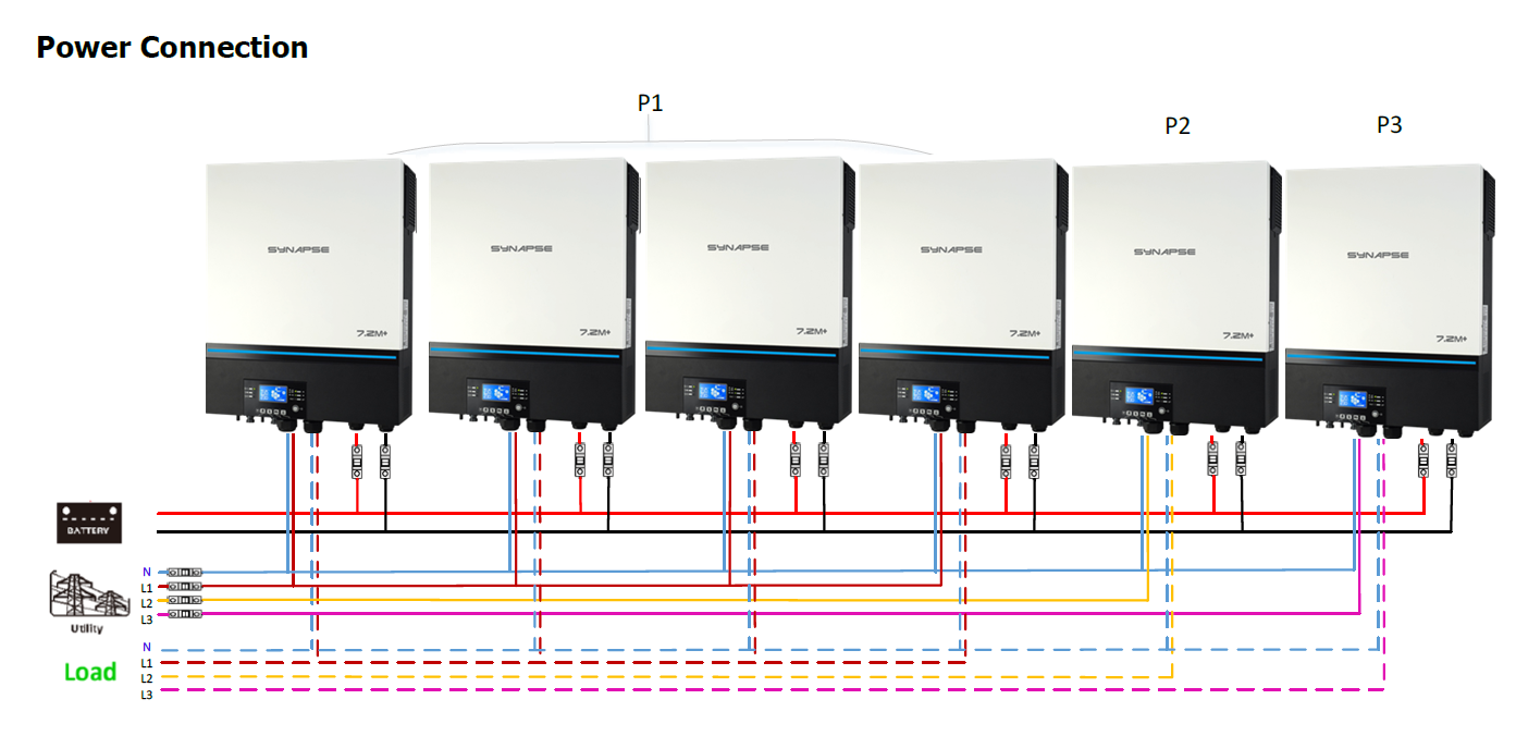Note: You can configure as illustrated above up to a maximum of 6 inverters on a single phase.