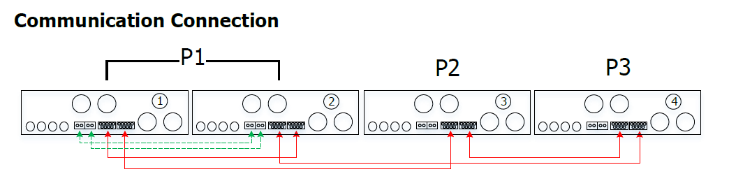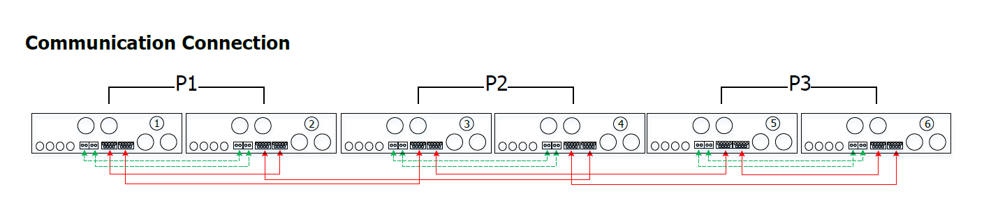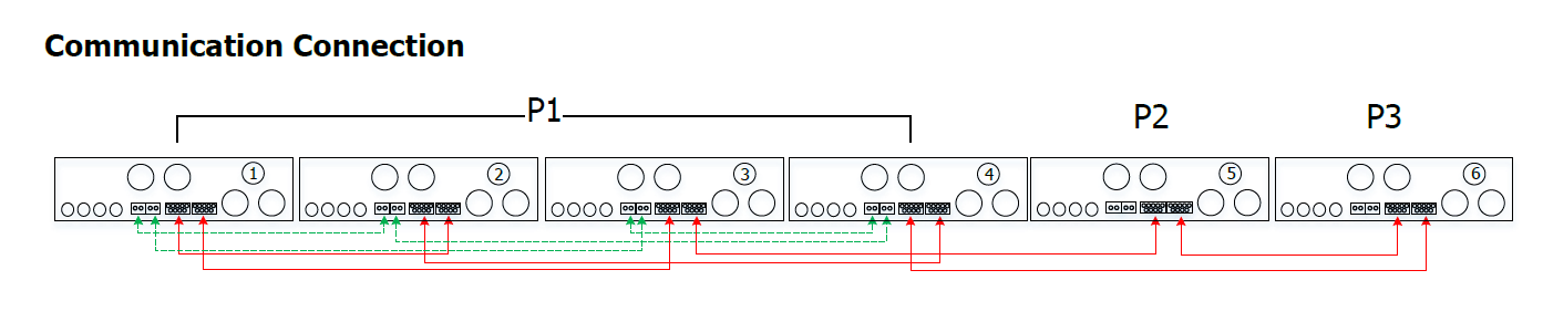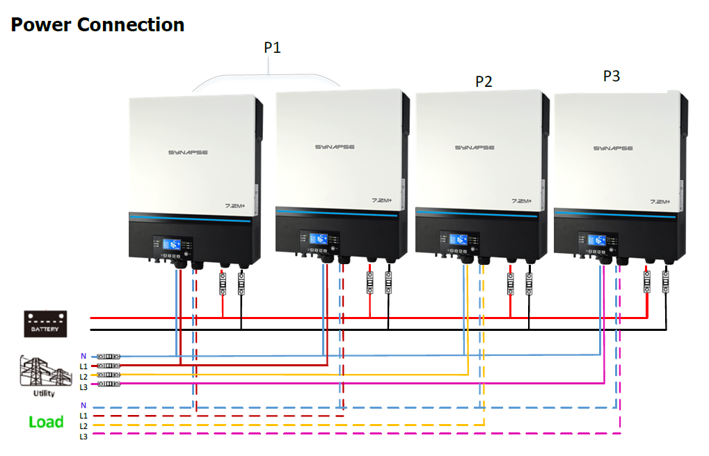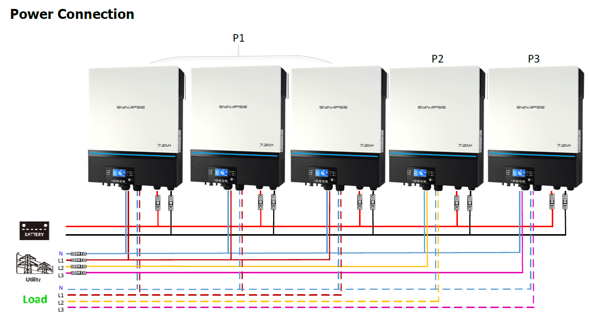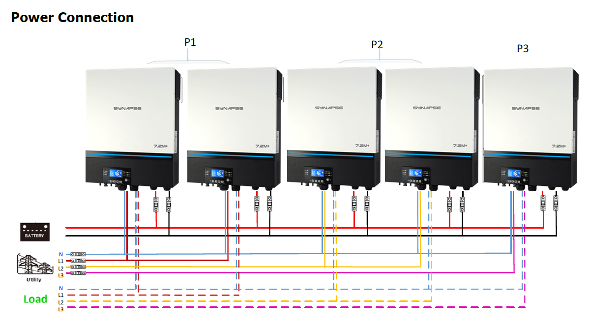 Note: You can configure as illustrated above up to a maximum of 6 inverters on a single phase.