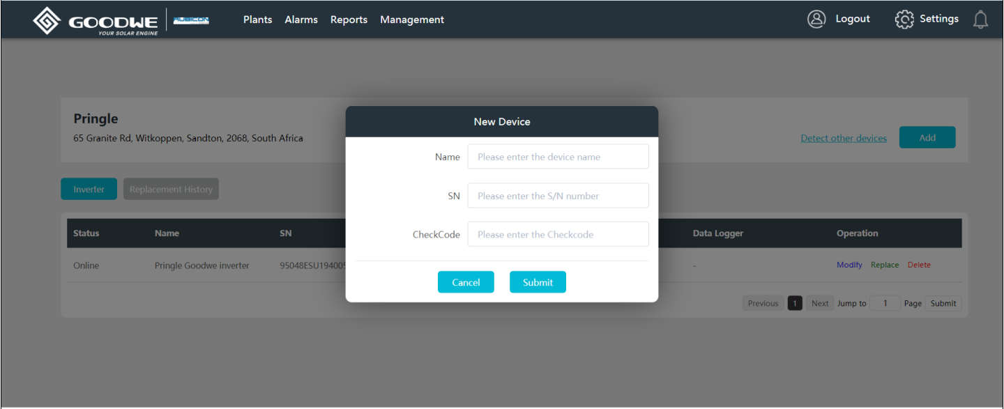 Prior to creating an account, obtain a distributor code from Rubicon - the inverter supplier/distributor. If it you can not obtain it at that moment, contact Goodwe after-sales service department and indicate where you acquired the inverter from.