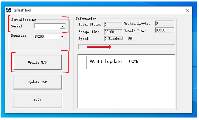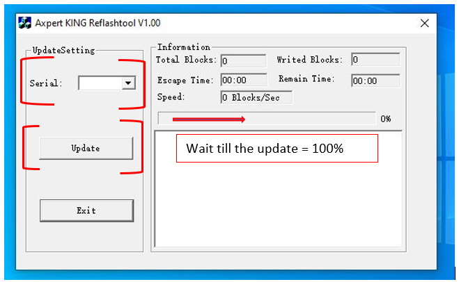 Note: When the inverter begins to update, the inverter display will black-out. Only click Exit once the update has reached 100% and the display is back to normal display.