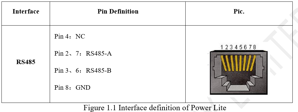3. A RS485USB converter with relative cables which have been modified according to the interface definition of Power Lite